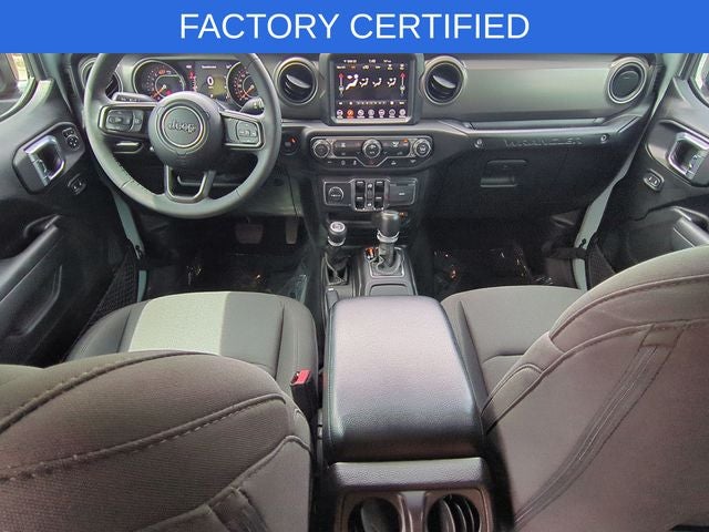 Stepping inside, you'll be greeted by a wealth of premium features, including the 8.4 Radio & Premium Audio Group, Convenience Group, LED Headlamp & Fog Lamp Group, Quick Order Package 25W Willys, Technology Group, and Trailer Tow & Aux Switch Group. Highlights include an Alpine Premium Audio System, Apple CarPlay, Google Android Auto, GPS Navigation, and a host of advanced safety and convenience technologies.